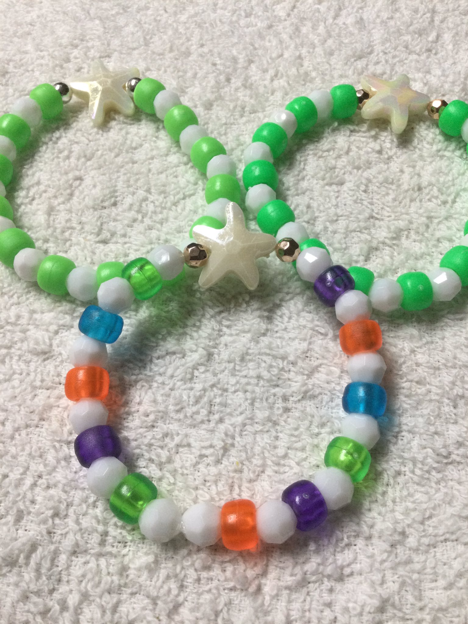 Stretch Bracelets size 7 1/2 made with Acrylic Beads with option choice of color. Stretch Bracelets can be altered to meet your size if communication is made BEFORE purchase to ensure materials are in stock