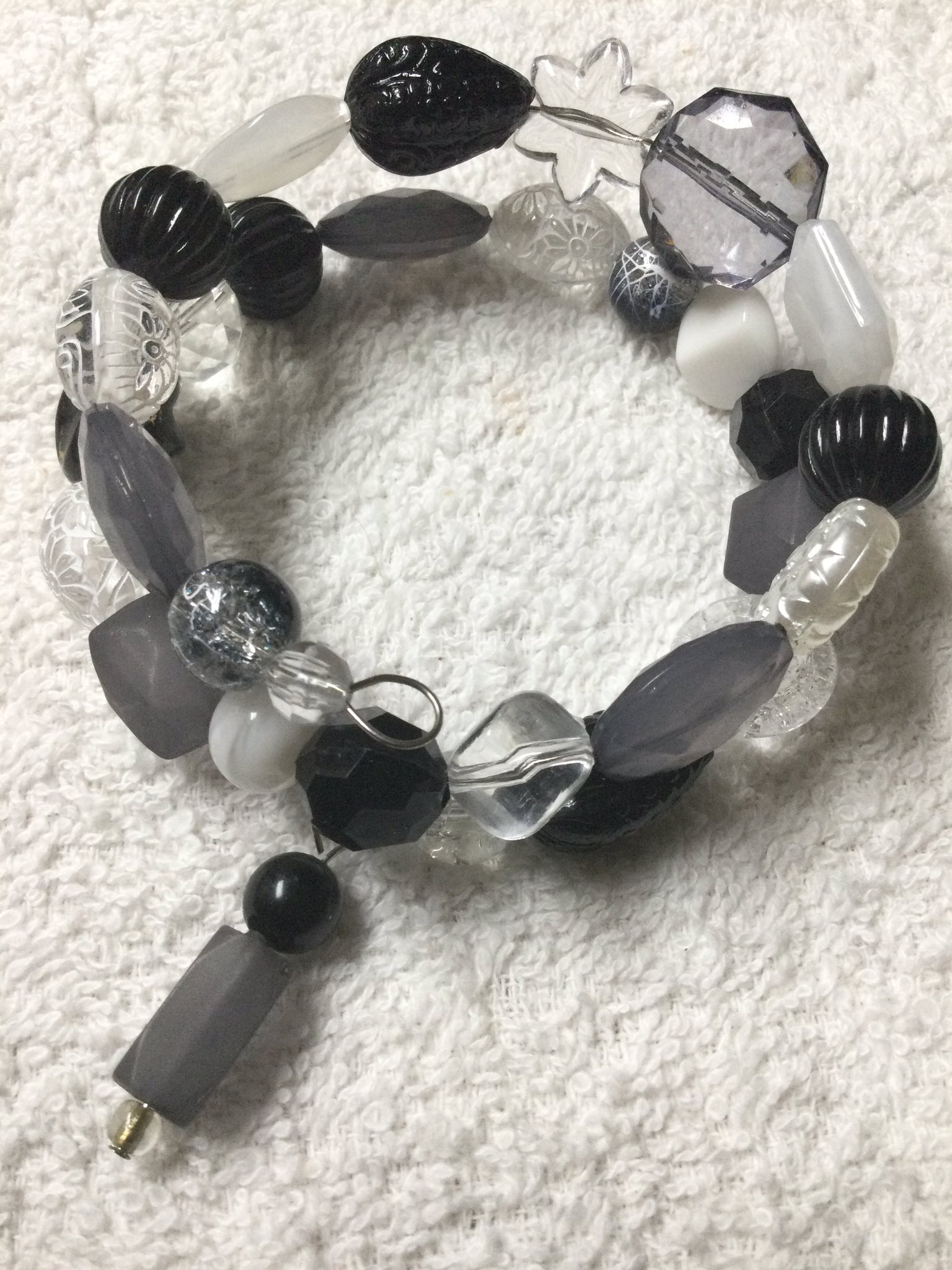 Love the color combination of this Memory Wire one size fits all Bracelet. Made with Glass and Acrylic Beads.