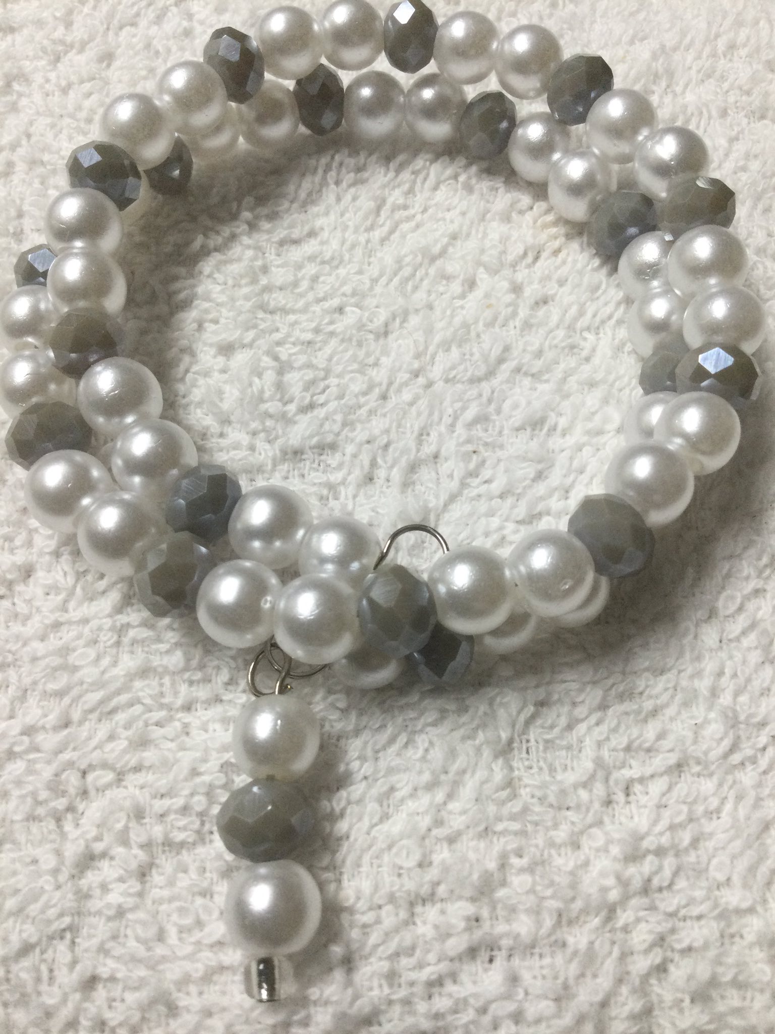 Memory Wire one size fits all Bracelet made with Acrylic Pearls and Faceted light Gray Spacer Beads
