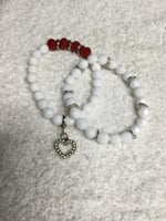 Red mixed with Pearls really make this set stand out and catch the eye. Wear it to any Holiday event it will definitely come up in conversation. These Bracelets are size 7 1/2 Stretch and made with Glass, Metal and Acrylic Beads