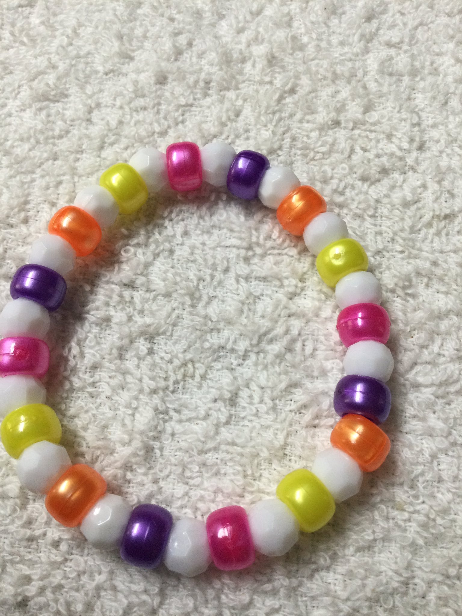 This Bracelet Set of 5 Bracelets are size 7 1/2 and are made with a come back Bead. Pony Beads are now a better quality and more Jewelry Crafters are using these for Adult / Women's Jewelry and Accessories. You get the look, fashion statement yet they are Budget friendly. Mix and match or give them as a gift of appreciation. Handmade with love, heart and Prayer and so easy to wear